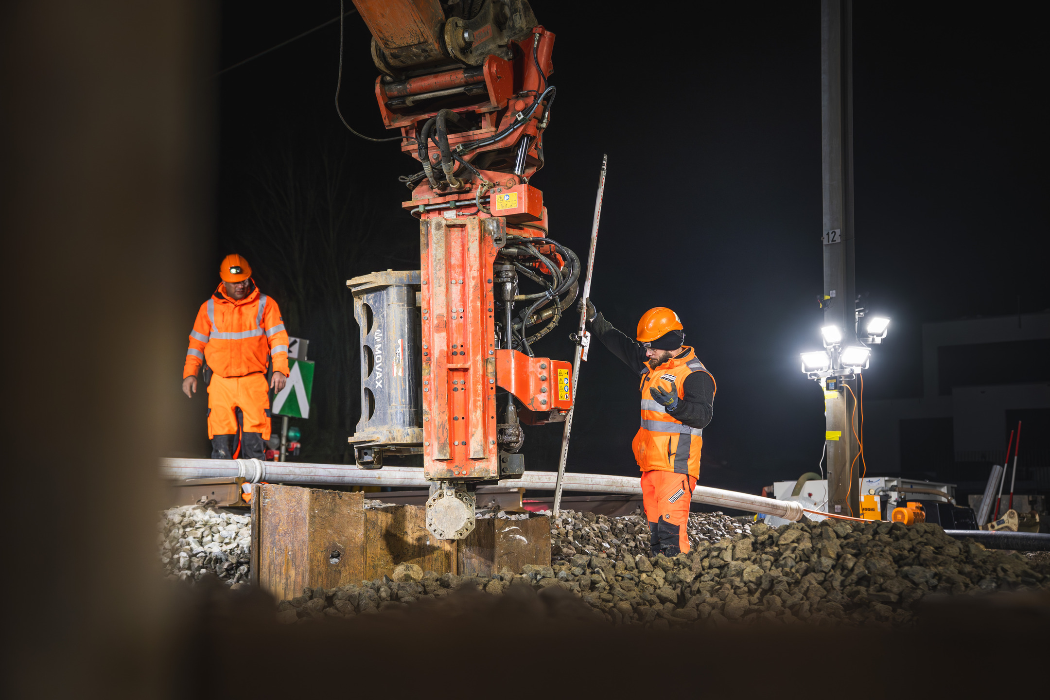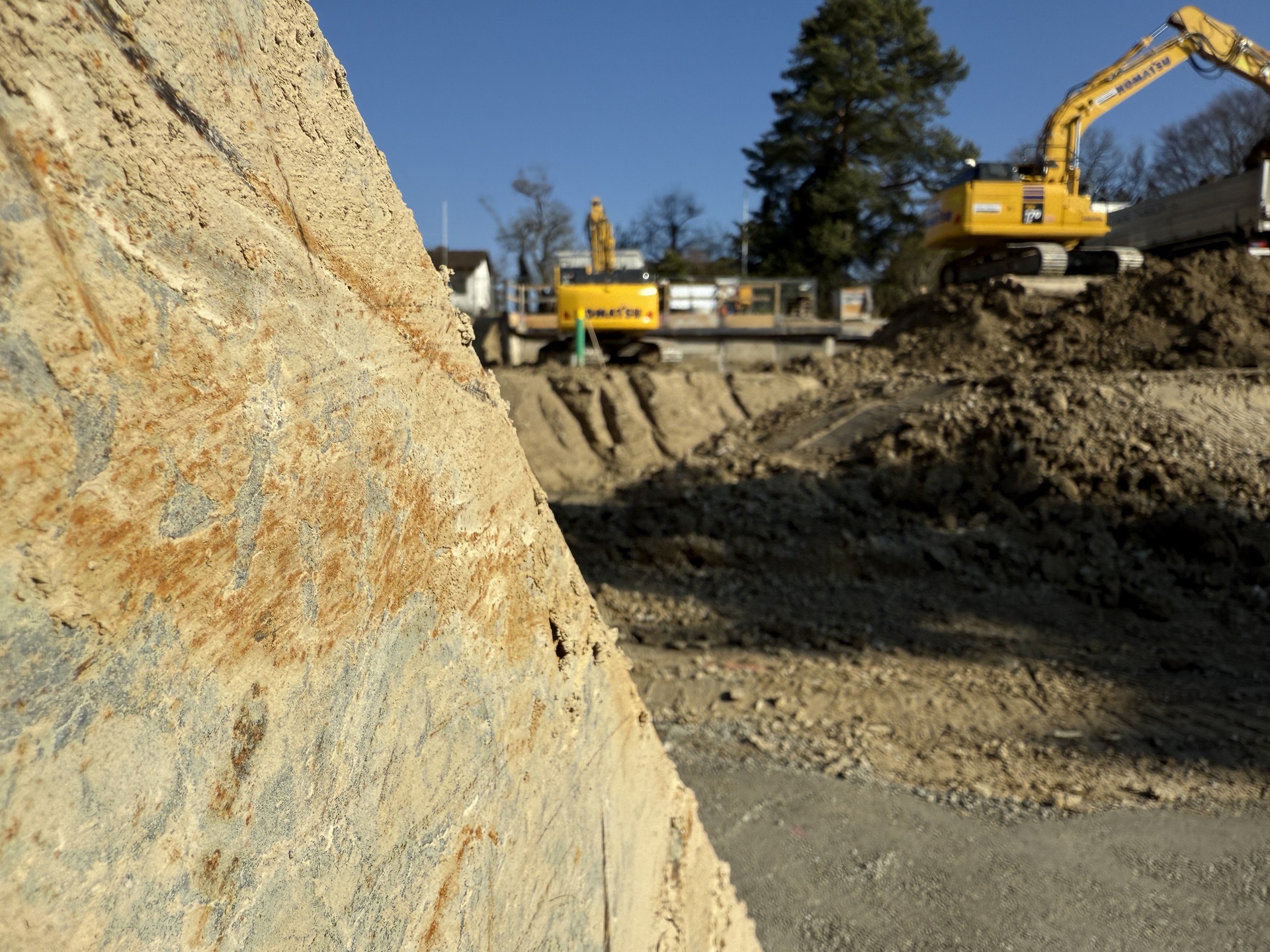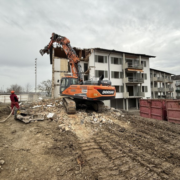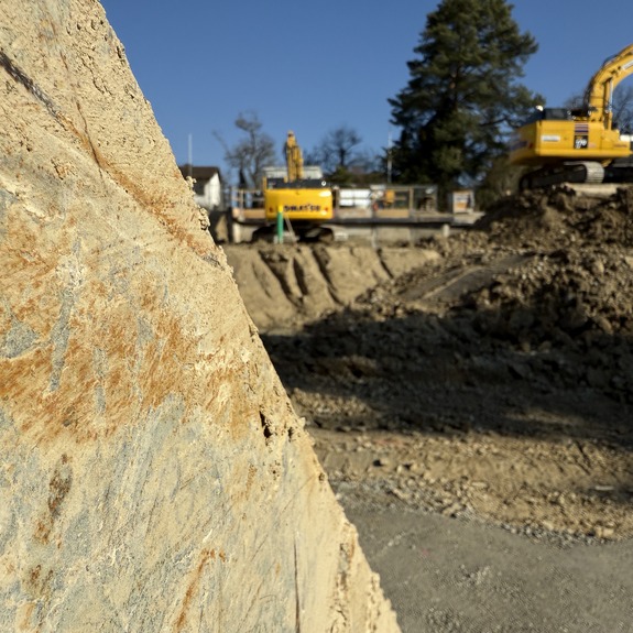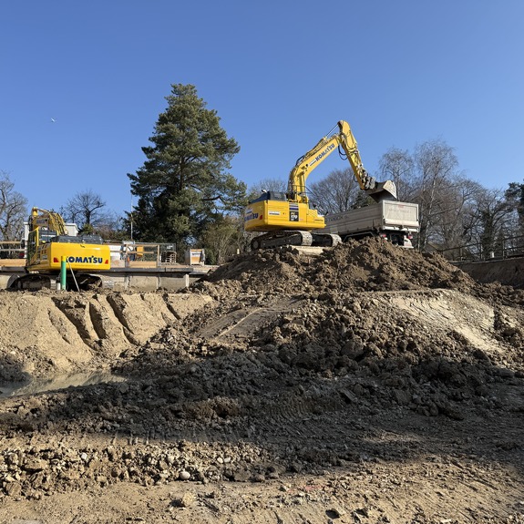 Für die Durchführung der Arbeiten setzten wir unsere Movax-Seitengrifframme sowie einen 25t Bagger ein, unterstützt von zwei weiteren Baggern, einem Komatsu 14t und einem Komatsu 2.6t. Um die straffen Zeitpläne einzuhalten, war ein reibungsloses Zusammenspiel aller Beteiligten, von der Arbeitsvorbereitung bis zur Ausführung, von entscheidender Bedeutung.